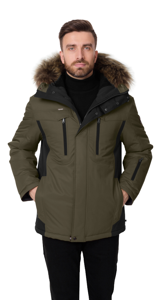 Зимняя куртка AutoJack 992 - олива/чёрный - с натуральным мехом